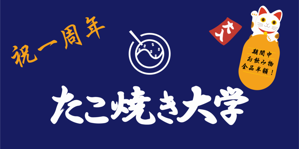 昨年10月3日に「たこ焼き大学」を開店し、皆様のおかげで1周年を迎えることとなりました。