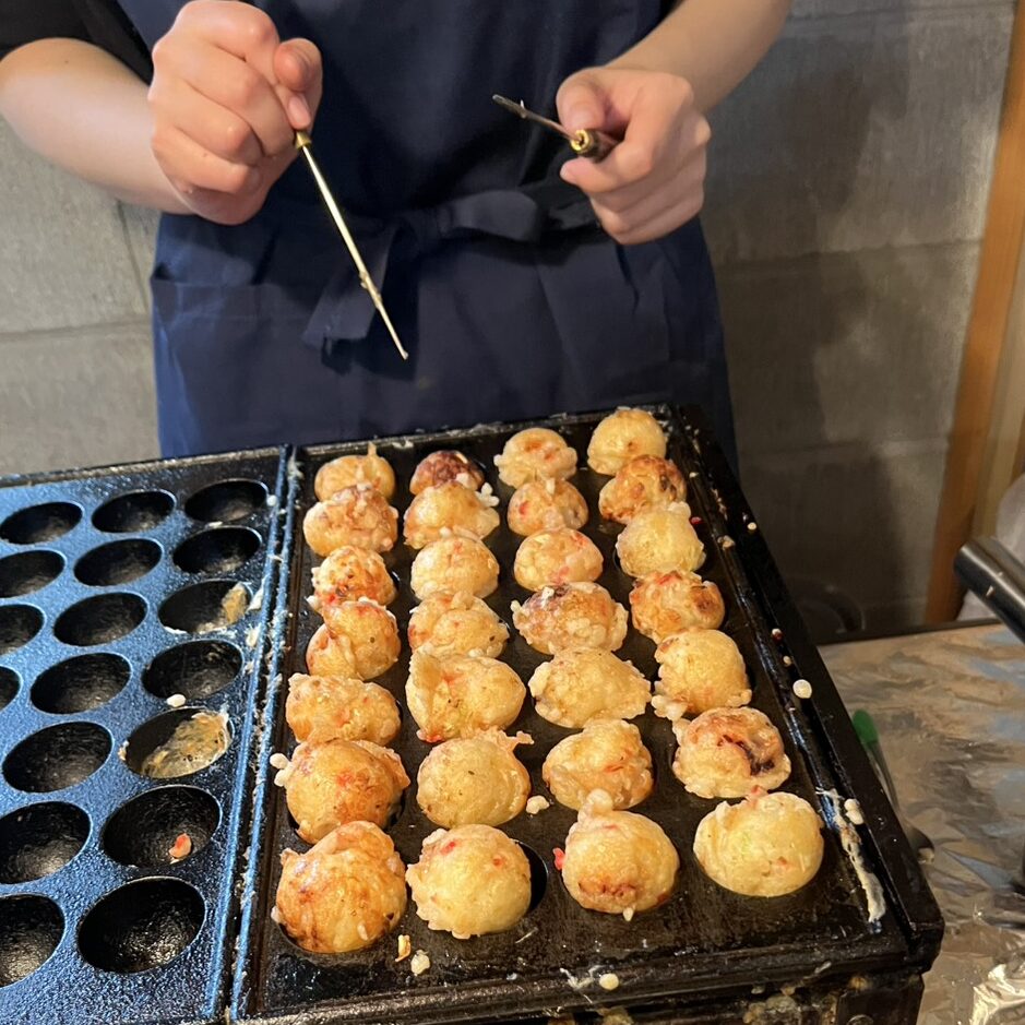 そのような制約がある他、検定員となる教授陣が見守る中、受験生は緊張しながらも、たこ焼きを焼きました。練習の成果がよく出ており、合格となりました!